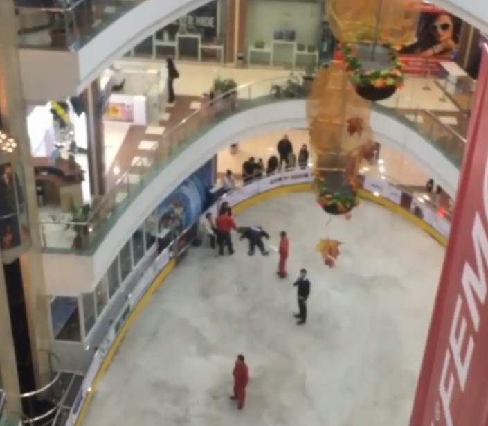 Инцидент произошел 29 октября. Мужчина спрыгнул с третьего этажа здания. По словам очевидцев, неизвестный перепрыгнул через ограждение и упал на каток.