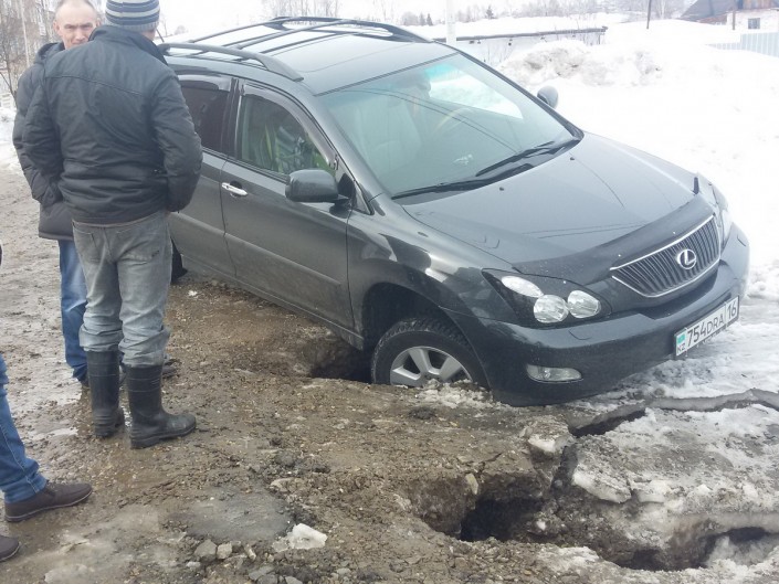 В Зыряновске автомобиль марки Lexus RX 330 при попытке сдать назад правым передним колесом провалился под асфальт, передает Yk-news.kz. Этот провал образовался на пересечении улиц Тимофеева и Брилина, как раз там, где минувшей осенью вели реконструкцию теплосети.