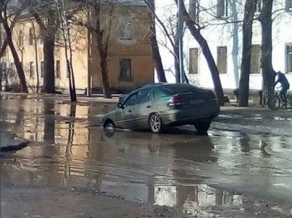 Настоящим бедствием для горожан стали непролазные лужи на дорогах в местах разрушенного дорожного полотна. Пользователи соцсетей активно делятся фотографиями с мест водных "ловушек", в которых утопают авто.
