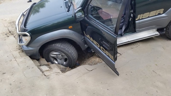 Внедорожник провалился под асфальт в центре Костаная Фото с сайта alau.kz