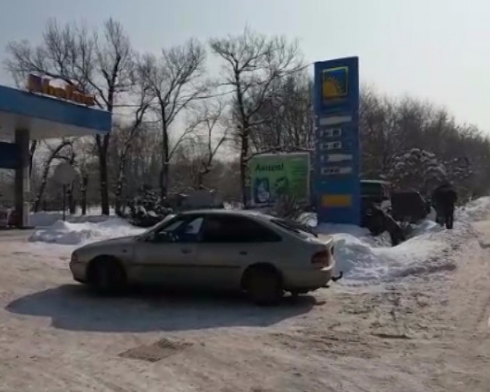 Mercedes-Benz во избежание столкновения резко повернул направо, залетел на бордюр, в арык и на полном ходу врезался в стенд автозаправки. В результате два человека были госпитализированы с различными травмами: водитель и ребенок.