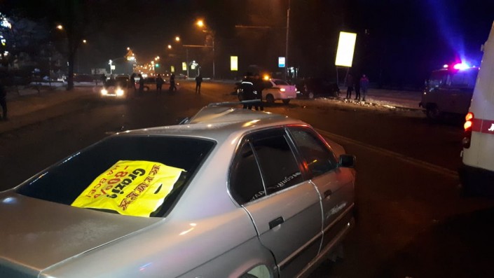 Авария произошла на улице Момышулы между улицами Маречека и Толе би. По словам очевидцев, водитель BMW, двигаясь в южном направлении по Момышулы, по невыясненным причинам выехал на полосу встречного движения и столкнулся с автомобилем Hyundai. После это в Hyundai врезался Renault. Также получил повреждения автомобиль LADA.
