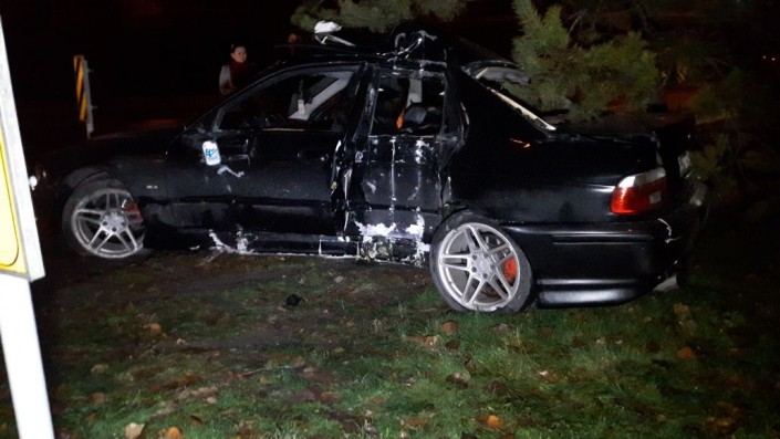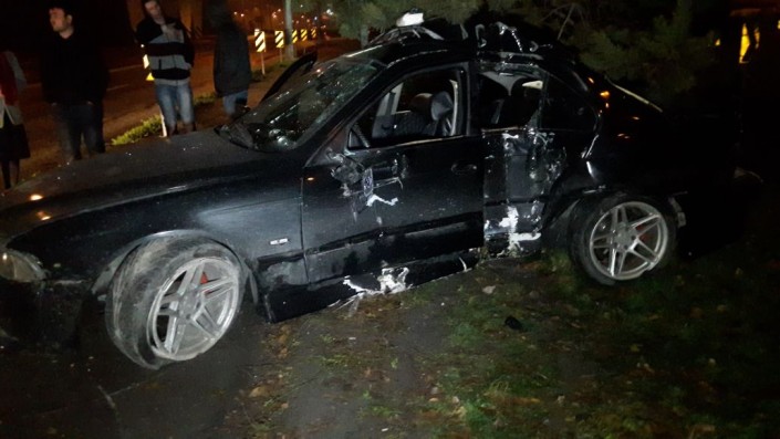 Авария произошла на проспекте Суюнбая. Как рассказал водитель BMW, на затяжном повороте он не справился с управлением, и автомобиль занесло на мокрой дороге. В результате машина врезалась в фонарный столб.