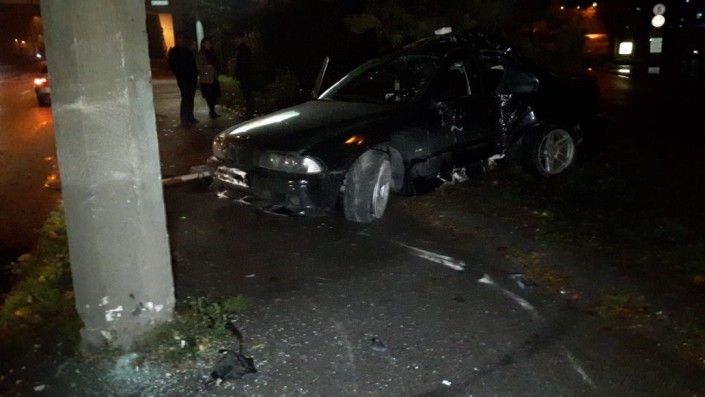 Водитель на BMW не справился с управлением и врезался в столб в Алматы, сообщает корреспондент программы "Территория происшествий" на телеканале СТВ.