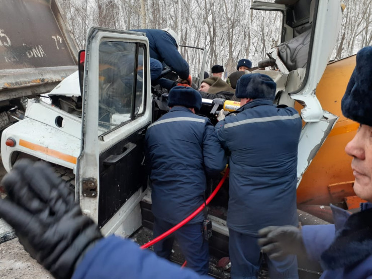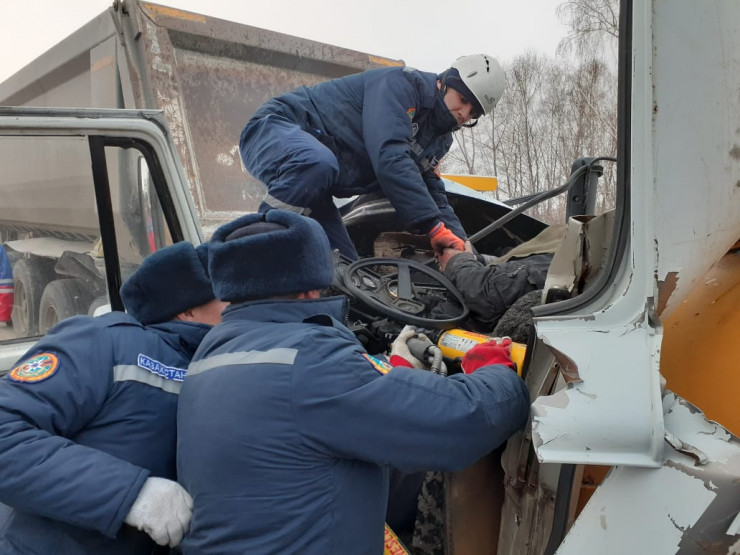 3 февраля в 17.00 на трассе Петропавловск - Жезказган вблизи райцента Бесколь столкнулись грузовики ГАЗ 3309 и MAN. Водитель первой вследствие столкновения оказался в стальном плену.