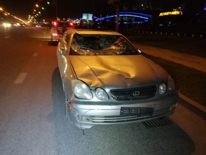 ДТП произошло на улице Момышулы около "Алматы Арена". Со слов очевидцев, пешеходы переходили дорогу в неположенном месте, когда их на полном ходу сбил автомобиль.