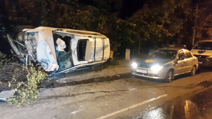 В ночь на 13 октября в Алматы произошла авария - на улице Сулейменова внедорожник Lexus LX570 оказался в кювете, передает корреспондент программы "Территория происшествий" на телеканале СТВ.