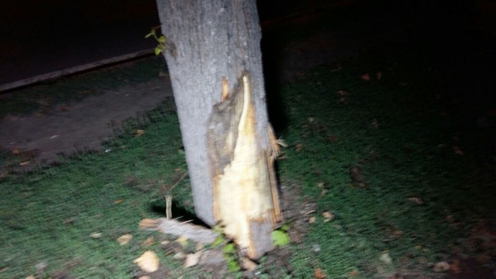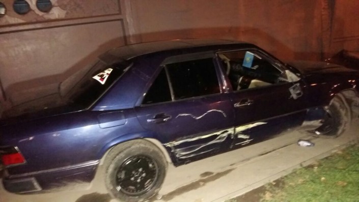 Водитель машины выехал на тротуар по улице Райымбека со дворов (с улицы Чайковского). Он сбил мужчину и врезался в забор газетного киоска. Когда машина вышла из строя, он остановился.