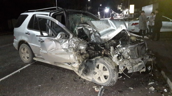 Водитель Mercedes протаранил припаркованный грузовик в Алматы Фото программы "Территория происшествий"