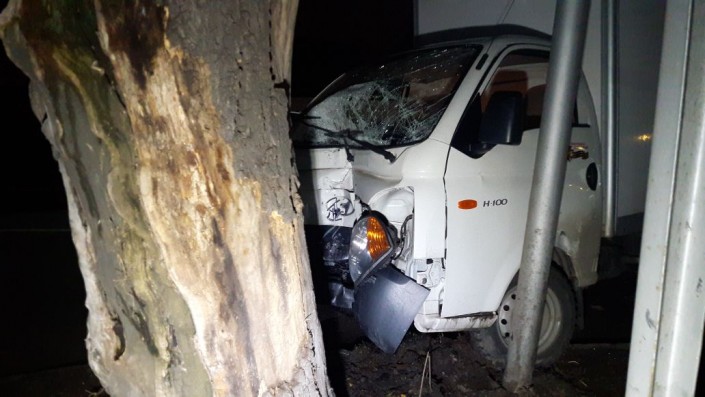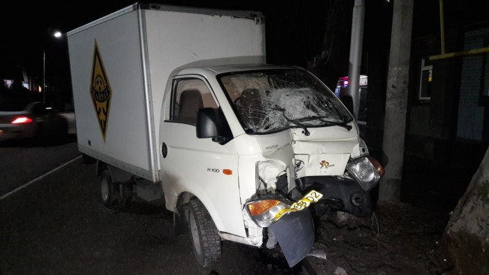 ДТП произошло на улице Татибекова. Водитель Mercedes не справился с управлением и на полном ходу врезался в припаркованный Hyundai. От удара грузовик отбросило в дерево.