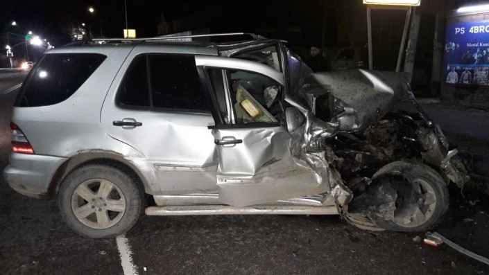 Водитель Mercedes протаранил припаркованный грузовик в Алматы