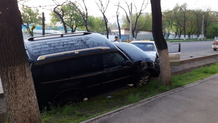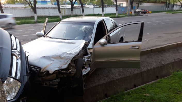 ДТП произошло на улице Жарокова. Mercedes двигался в северном направлении по Жарокова. Со слов водителя, у автомобиля отказала электрогидравлическая система тормозов SBC (Sensotronic Brake Controle). Водитель не справился с управлением и на полном ходу врезался в припаркованный Mitsubishi Pajero. От удара внедорожник отбросило в арык.