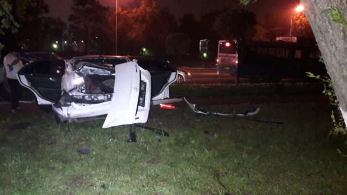 После этого он сбил столб освещения и врезался в дерево. В результате ДТП пострадал водитель Mercedes, его госпитализировали. Остальные участники аварии от госпитализации отказались.