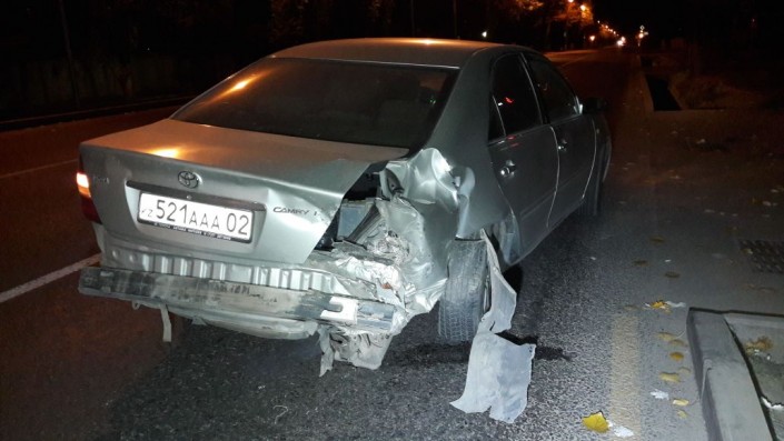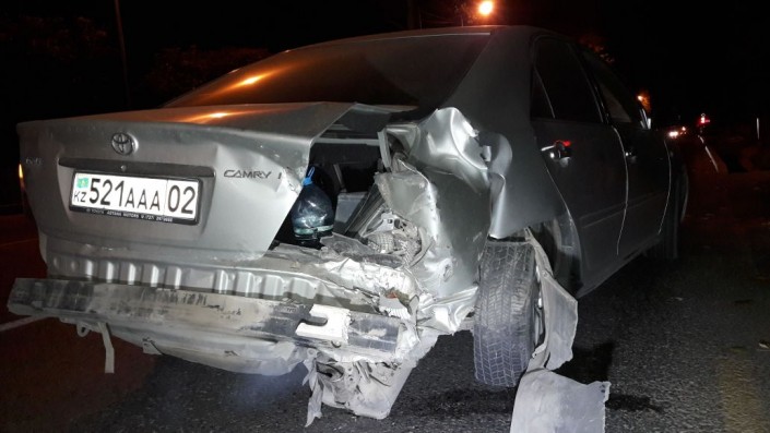 ДТП произошло в микрорайоне "Калкаман". По словам очевидцев, водитель Toyota Camry 10 двигался по улице Ашимова в северном направлении. Перед улицей Шаляпина водитель на полном ходу врезался в Toyota Camry 30, после чего сбил пешехода.