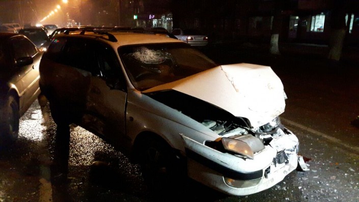 Авария произошла на пересечении проспекта Сейфуллина и улицы Котельникова. Со слов очевидцев, автомобили остановились перед пешеходным переходом, чтобы пропустить людей. В это время в них на полном ходу влетела Toyota Caldina.