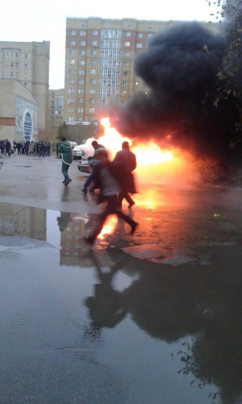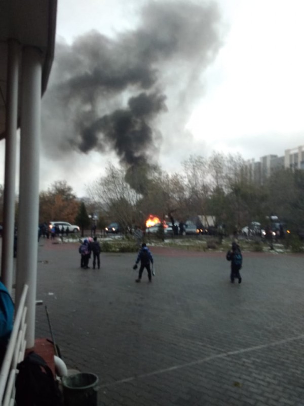 В Астане на парковке возле школы-лицея № 54 загорелся автомобиль. Пожарные службы выясняют причину возгорания, передает корреспондент Tengrinews.kz.