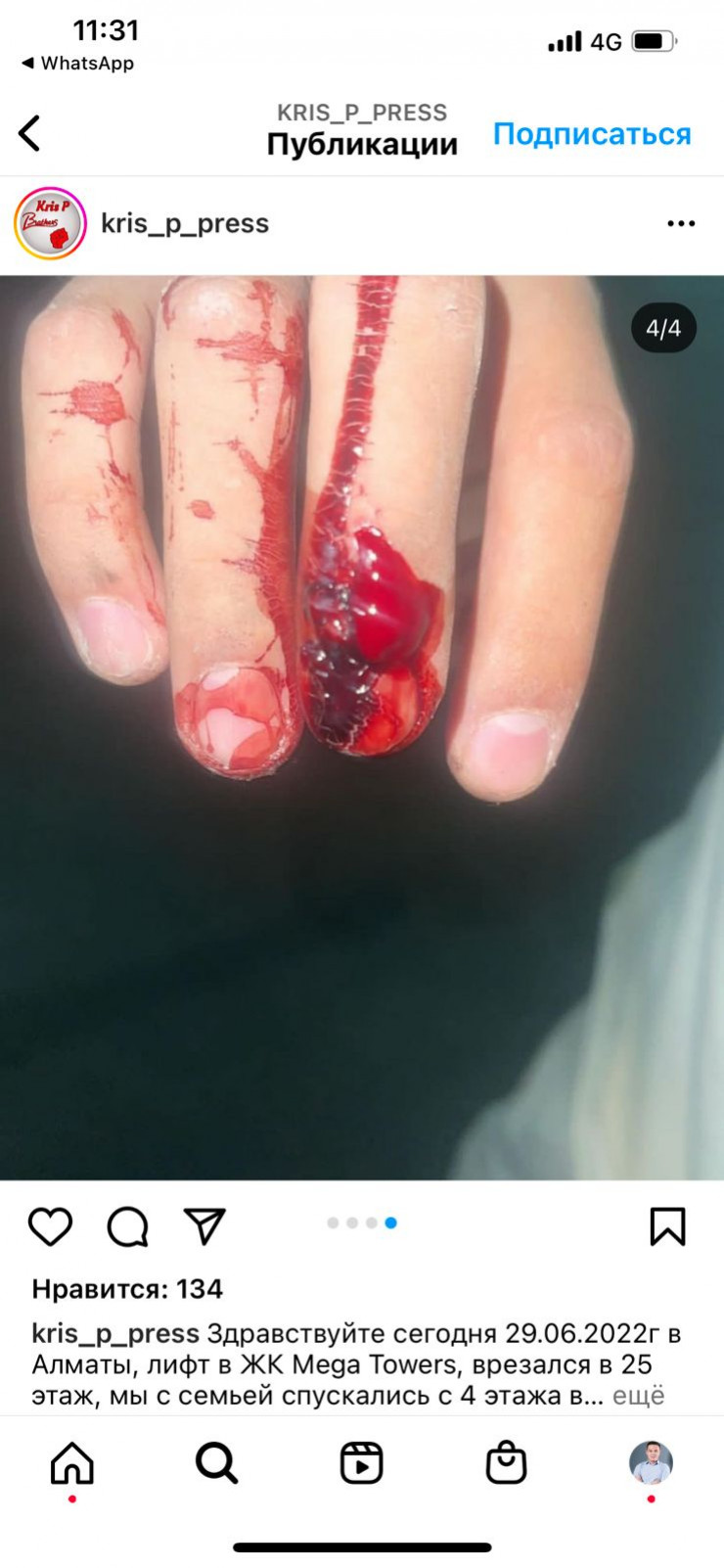"Лифт в ЖК Mega Towers врезался в 25-й этаж. Мы с семьей спускались с 4-го этажа в этом ЖК на лифте. Когда он спустился на 1-й этаж, вышли все, кроме меня. Двери не успели закрыться, как он очень быстро начал ехать на верхний этаж. Я думал, его кто-то вызвал и не закрыл двери. После того как он очень быстро доехал до 7-го этажа, он начал лететь вверх еще быстрее вплоть до 25-го этажа с сильнейшим ударом в крышу здания", - говорится в описании к видео.