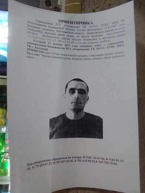 В настоящее время ориентировки на беглеца расклеены в общественных местах Костаная. Полиция просит жителей, имеющих какую-либо информацию о разыскиваемом, сообщить ее по номеру 102.