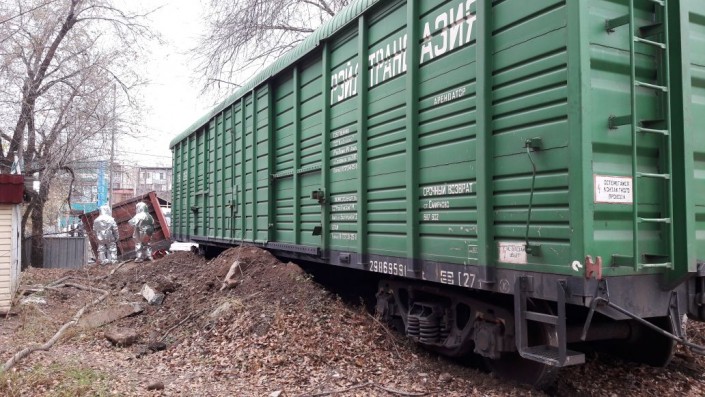 "Вагон пустой, пострадавших нет. Инцидент произошел на частных подъездных путях. В целях обеспечения безопасности, пожарными был подан специальный пенный раствор, иначе говоря - создана пенная подушка. Это делается в целях пожарной безопасности, при подъеме вагона. В ближайшее время компетентными организациями будут выполнены работы по подъему вагона", - прокомментировал он.