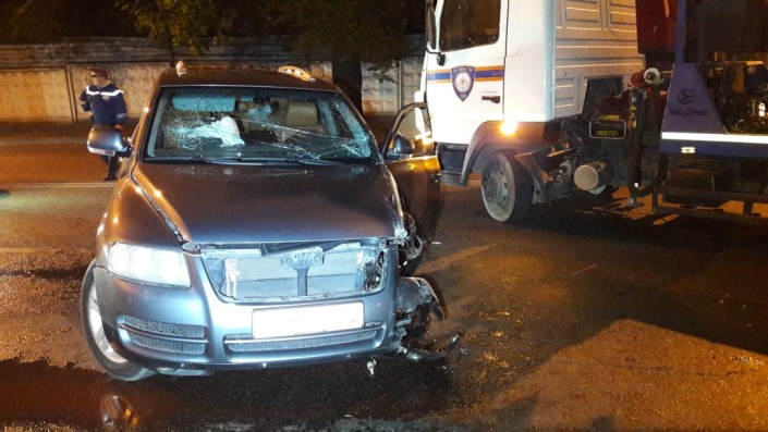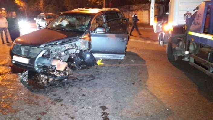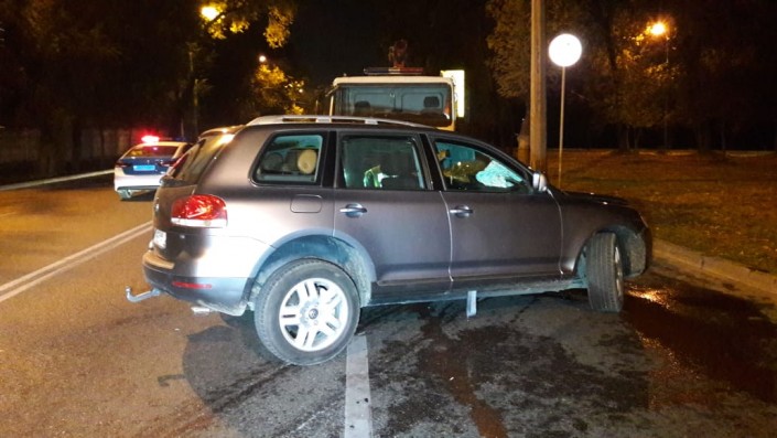 ДТП произошло на проспекте Суюнбая в северном направлении, не доезжая улицы Шолохова. По словам очевидцев, автомобиль Volkswagen Touareg двигался на высокой скорости по Суюнбая на юг и выехал на полосу встречного движения, где допустил лобовое столкновение с Audi. От удара у Volkswagen вырвало колесо.