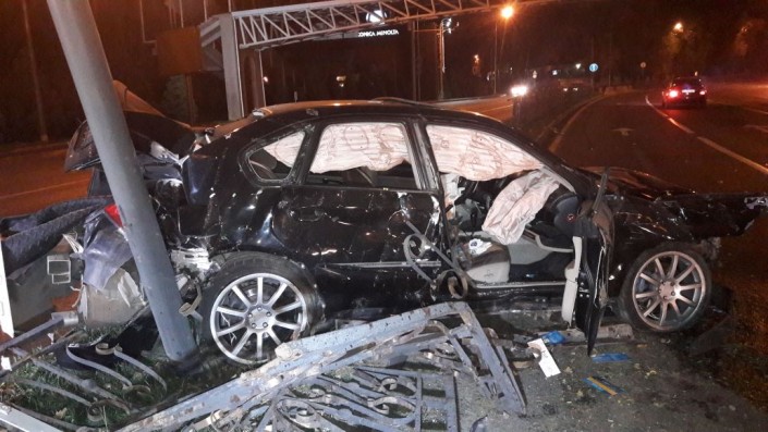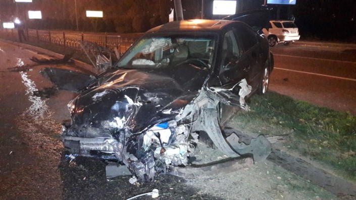 ДТП произошло по проспекту Аль-Фараби. По словам очевидцев, водитель Subaru не справился с управлением на затяжном повороте. Машину занесло, она разрушила три секции металлического ограждения и врезалась в столб.