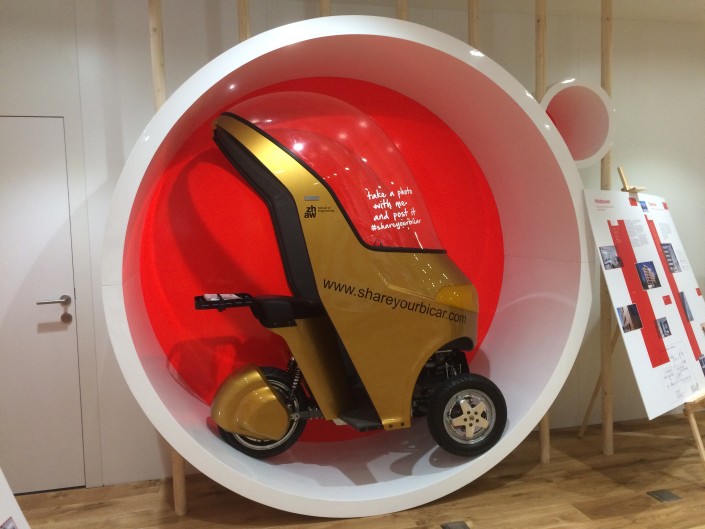 В Швейцарии в следующем году планируется внедрение нового транспорта, по словам организаторов павильона, это будет некий аналог местной программы велопроката AstanaBike. Одноместный электрокар будет арендоваться горожанами, а специальное приложение на смартфонах будет считывать километраж проката и снимать оплату.