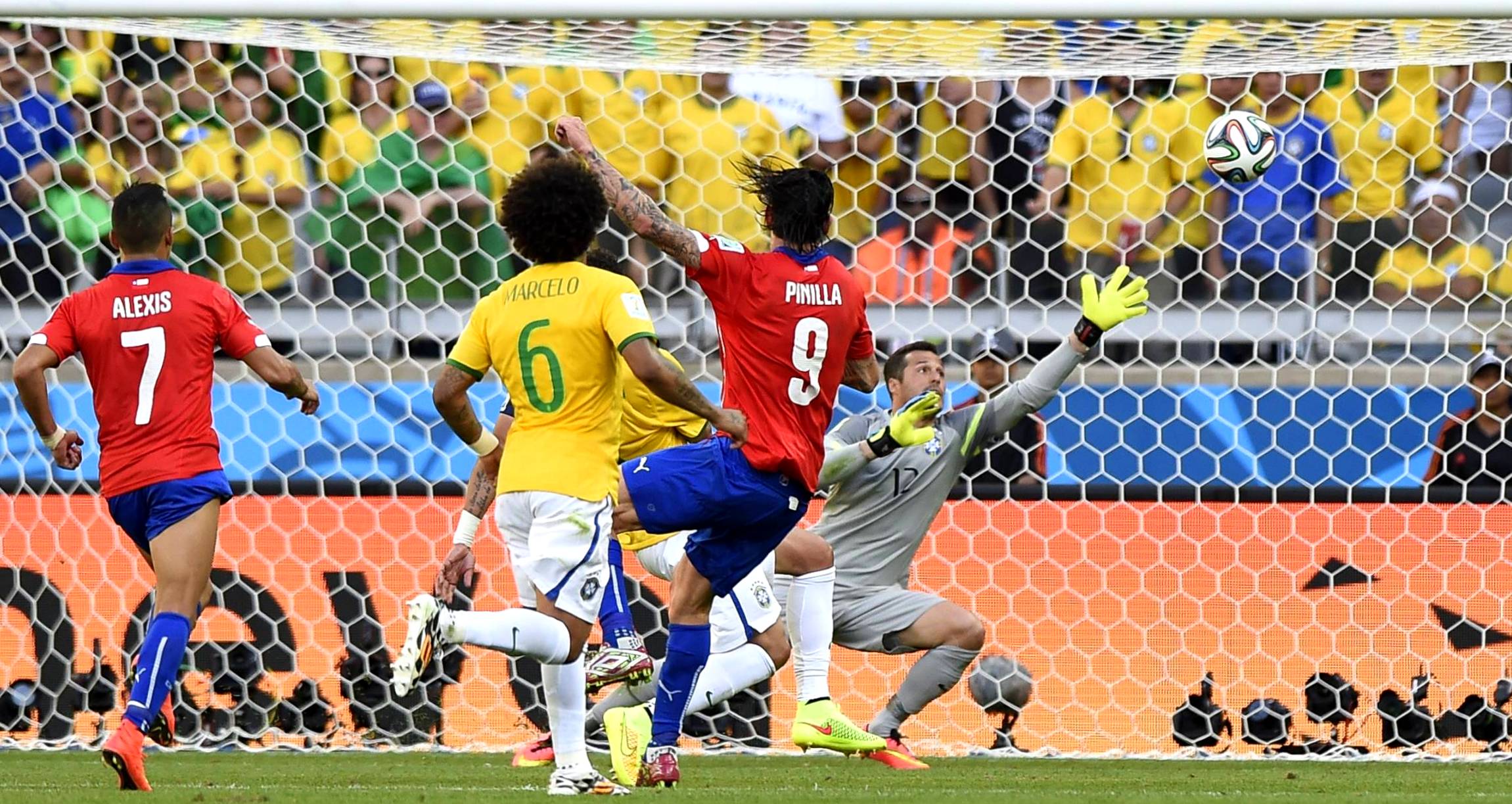 28 июня. Маурисио Пинилья сотрясает перекладину "Селесао" на последних минутах - чилийцы могли выбить хозяев, но едут домой.