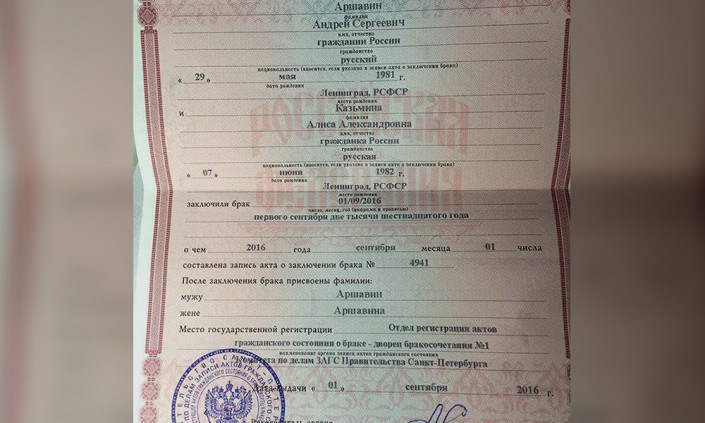 Для Аршавина это первые официально зарегистрированные отношения. Ранее спортсмен состоял лишь в гражданском браке Юлией Барановской. Пара жила вместе девять лет, за это время у них родились трое детей. В 2012 году Аршавин и Барановская расстались.