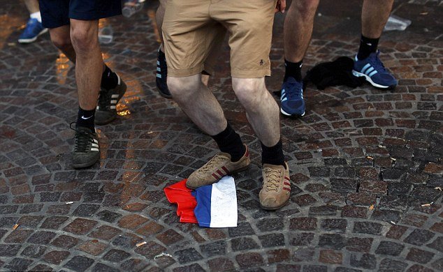 Кроме того, британские фанаты провоцировали российских тем, что топтали и "подтирались" российским флагом.