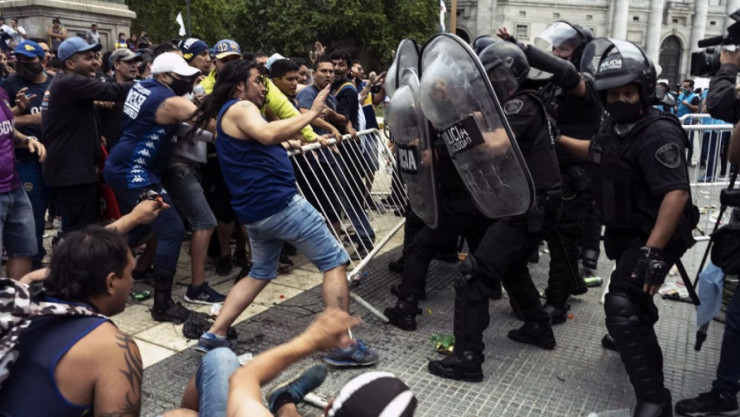 Прощание с Марадоной проходило в президентском дворце. Желающих проводить своего кумира в последний путь впускали в здание по очереди. Однако позже стало известно, что прощание с легендарным футболистом закончится в 16:00 по местному времени. Затем у входа во дворец начались беспорядки: произошло столкновение между полицией и поклонниками Марадоны.