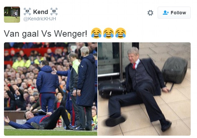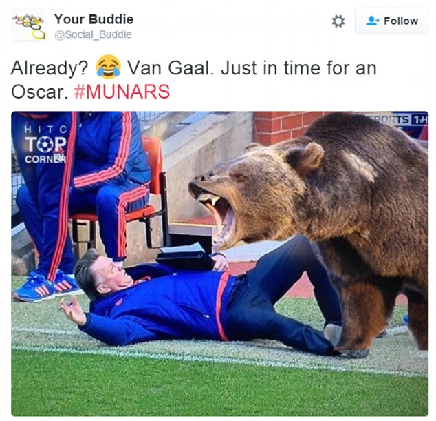 Демонстративное падение Луи ван Гала тут же стало мемом в социальных сетях. Пользователи Twitter отреагировали смешными картинками, обыгрывающими падение тренера. При этом фанаты шутят, что Ван Гал достоин "Оскара" даже больше, чем Леонардо ди Каприо.