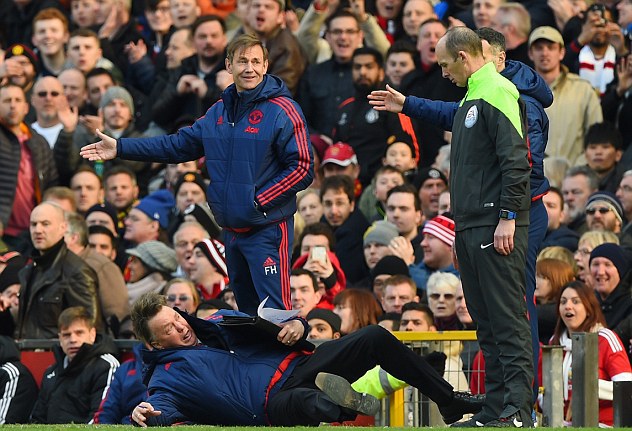 В одном из эпизодов игры 64-летний голландский специалист, апеллируя к резервному арбитру, картинно упал, пародируя симуляцию одного из игроков команды соперника. Таким образом, Ван Гал хотел убедить рефери, что штрафной в сторону ворот "МЮ" был назначен неправильно.