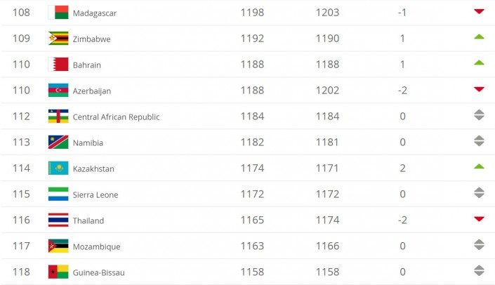 В июньской версии, опубликованной на официальном сайте организации, подопечные Михала Билека поднялись на две строчки, обойдя Таиланд и Сьерра-Леоне, и теперь занимают 114-е место.
