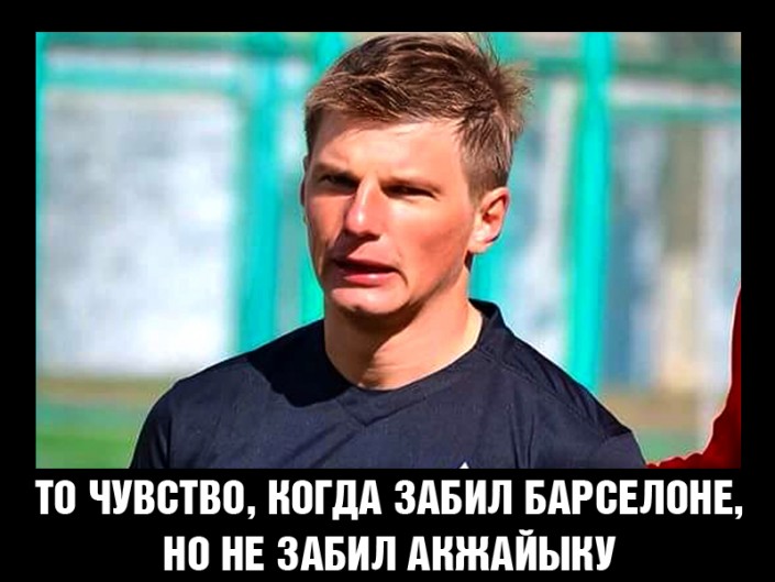 После победы уральского "Акжайыка" над алматинским "Кайратом", в составе которого впервые вышел на поле звездный новичок Андрей Аршавин, пользователи Сети создали несколько юмористических мемов на тему проигрыша, пишет "Мой город".