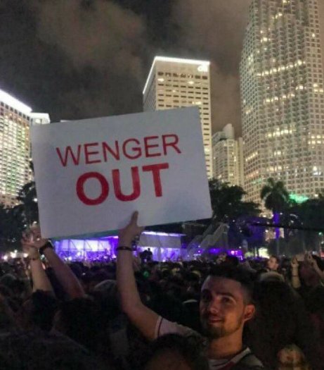 Саму акцию начали английские болельщики "Арсенала", недовольные плохим выступлением команды. Они неоднократно устраивали протесты против Венгера, а однажды даже арендовали самолет для призыва к тренеру. После этого к акции присоединились фанаты клуба со всего мира. Они не ограничиваются спортивными мероприятиями, демонстрируя призыв к главному тренеру на забастовках и концертах.