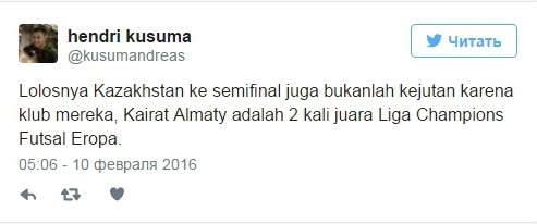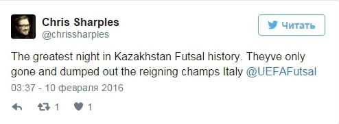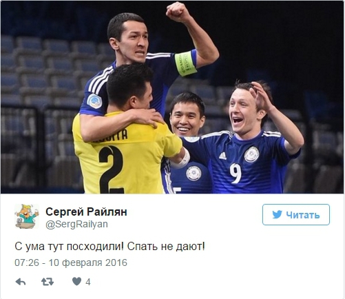 А вот какими твитами встретили победу Казахстана зарубежные любители футзала: