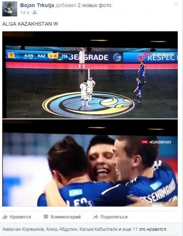 "Привет. Я рад победе Казахстана над Италией и верю, что им по силам победить Испанию".