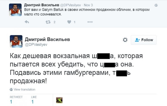 Иногда было трудно поверить, что такие жесткие сообщения пишет официальный представитель клуба. Васильев не стесняясь выражался нецензурной речью в сторону руководителя Казахстанского альянса блогеров Галыма Байтука.