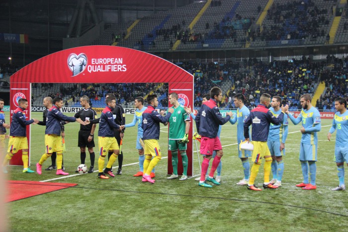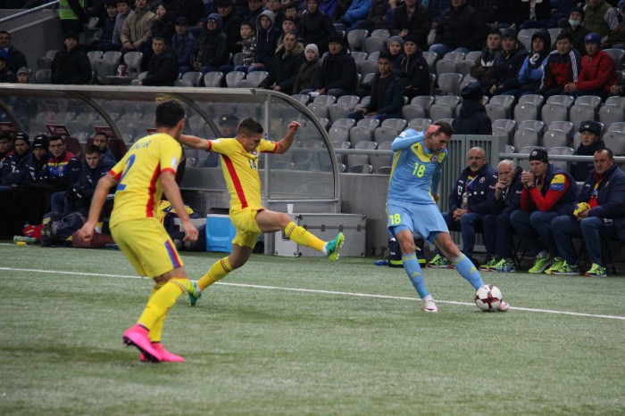 Первый удар по воротам в этой игре нанес форвард румын Богдан Станку, пробивший на десятой минуте чуть выше цели. Ответ сборной Казахстана последовал на 21-й, однако Сергей Хижниченко не воспользовался моментом.