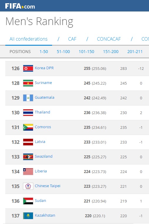При этом 2017 год Казахстан начинал в сотне сильнейших сборных мира в рейтинге ФИФА, расположившись на 98-й строчке. Таким образом, за календарный год национальная команда потеряла 39 позиций.