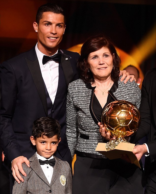 Криштиану Роналду с мамой и сыном на церемонии награждения "Золотого мяча". © FIFA