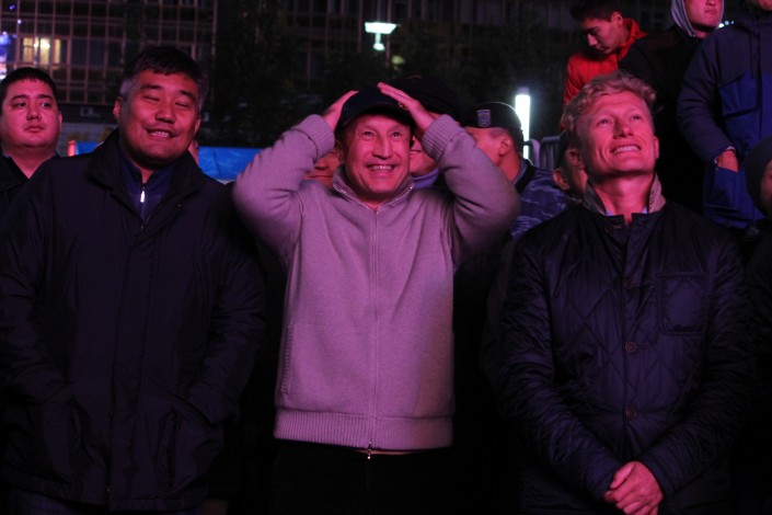 За игрой "Астаны" столичные фанаты наблюдали на уличных экранах. Толпа болельщиков собралась, чтобы вместе поддержать своих любимцев. Пришел поболеть за команду аким Астаны Адильбек Джаксыбеков и олимпийский чемпион Александр Винокуров.