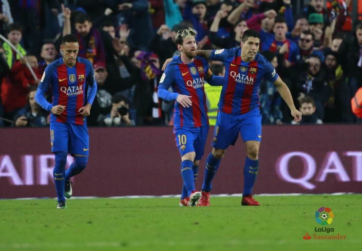 Первыми счет открыли "сине-гранатовые". На 53-й минуте хозяева заработали штрафной на левом фланге. Луис Суарес в воздухе "перевисел" Варана и срезал мяч в дальний угол ворот.