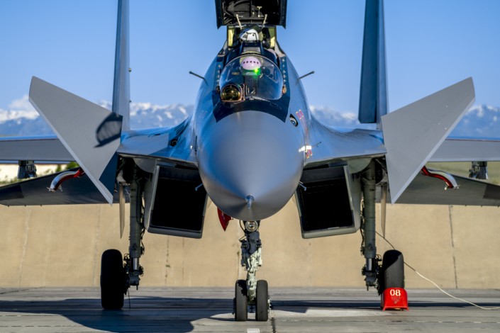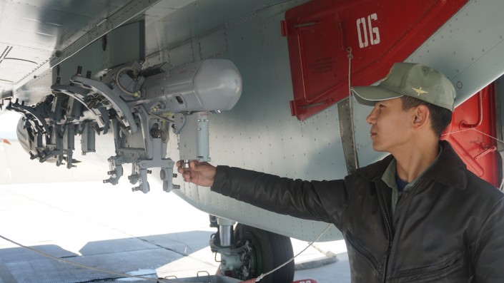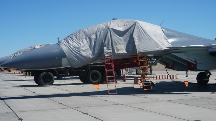 Через несколько часов эти самолеты совершат тренировочный полет. Но сначала военные техники должны подготовить их к вылету. Расчехлять истребители начинают на наших глазах.