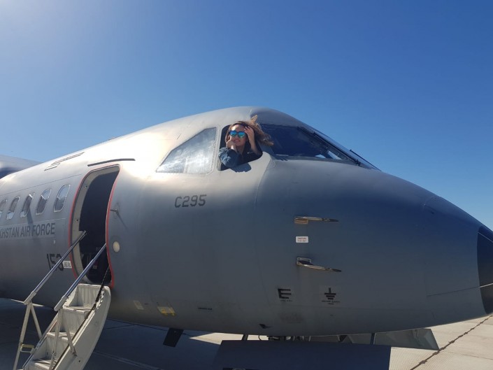 На одном из таких военно-транспортных самолетов С 295, как на фото, в Казахстан из Сирии эвакуировали людей во время первой спецоперации "Жусан". На таком же борту группу журналистов из Нур-Султана доставили ранним утром в Алматинскую область.