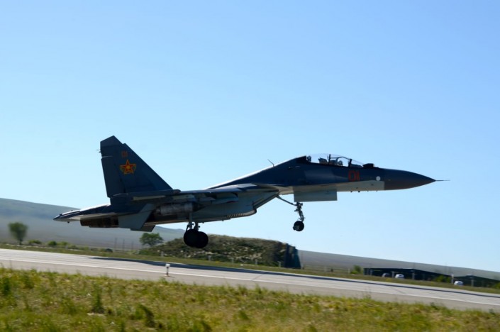 Во время учебно-тренировочных полетов пилоты набирают высоту до девяти тысяч метров. Су-30СМ поднимается на высоту 12 тысяч метров.