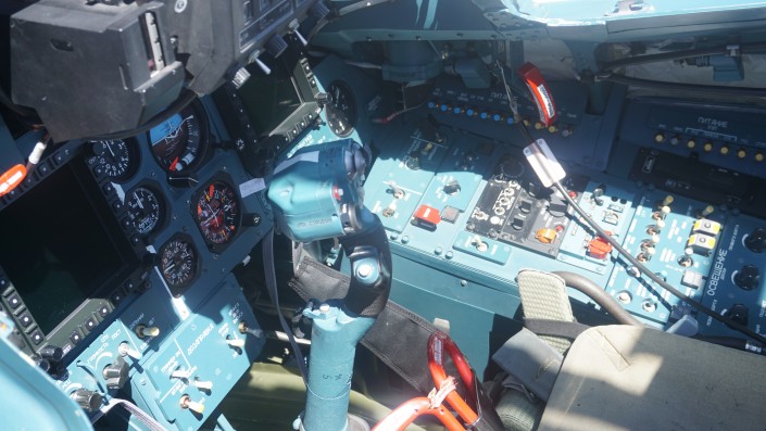 Так вблизи выглядит кабина военного самолета. Впереди кресло командира.