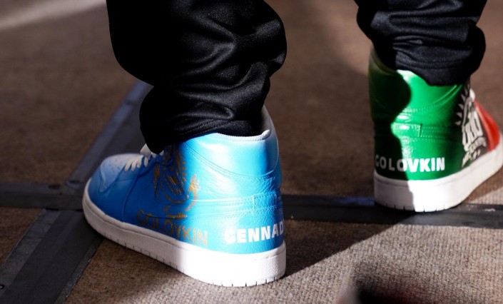 Особое внимание нашего фотографа привлекли кеды Геннадия Головкина, в которых он был на пресс-конференции.