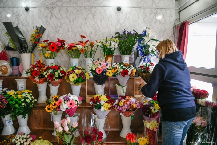 Пока мы беседуем, в магазин заходит мужчина лет 35-40. Простояв 15 минут и посмотрев на все букеты и цены, он уходит с задумчивым взглядом.