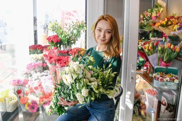 Наша следующая собеседница Жансая в цветочном бизнесе три года. Для нее 8 Марта - морально тяжелый день, так как она переживает за то, чтобы все было готово. Помощником в продаже цветов считает социальные сети, а именно Instagram.
